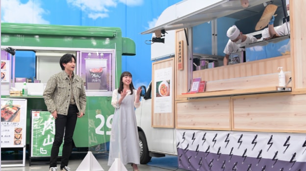 スタジオ収録のおすすめキッチンカーにはフードトラックカンパニーでキッチンカーを製作させていただいた「うなぎ わたべ」様のほか、松屋さん、デニーズさん、大人気の肉山さんの肉弁当も登場しています!